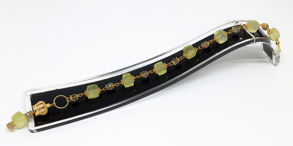 BRACCIALE IN ARGENTO 925 VERMEIL, OTTONE LAMINATO ORO, PREHNITE E LABRADORITE