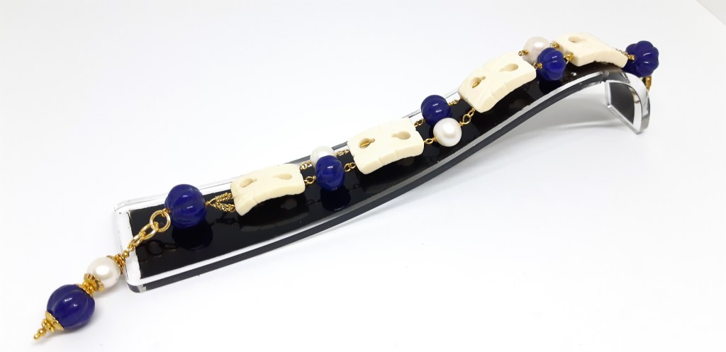 BRACCIALE IN ARGENTO 925, AVORIO DI MAMMOUTH, ZAFFIRI E PERLE DI ACQUA DOLCE