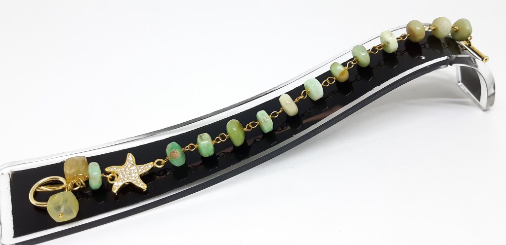 BRACCIALE IN ARGENTO 925 VERMEIL, CRISOPRASIO E PREHNITE