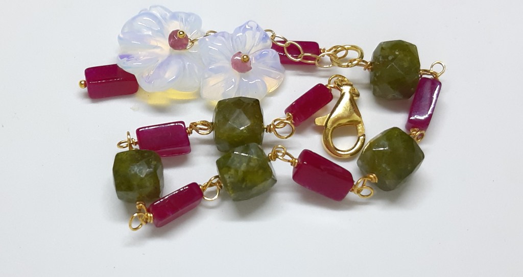 BRACCIALE IN ARGENTO 925 VERMEIL, RUBINI, VESSONITE, TORMALINA ROSA E OPALITE